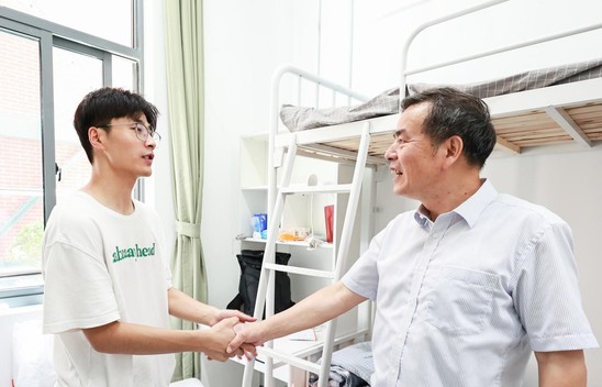盛春一行走訪了研究生新生公寓并了解新生的住宿情況,他對新同學(xué)表示熱烈歡迎并與家長們進(jìn)行親切交流。從學(xué)生生活到科研目標(biāo),從職業(yè)規(guī)劃到專業(yè)素養(yǎng),盛春為研究生萌新們送去溫暖的關(guān)懷與親切的問候,同時(shí)他還叮囑同學(xué)們要時(shí)刻牢記學(xué)校“信義勤愛 思學(xué)志遠(yuǎn)”的校訓(xùn),養(yǎng)成良好作息習(xí)慣,加強(qiáng)體育鍛煉,保持積極健康、樂觀向上的生活態(tài)度,要珍惜學(xué)習(xí)機(jī)會,以全新的姿態(tài)開啟研途新征程。