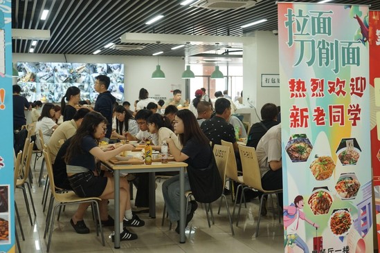 思餐廳中,2023級出版印刷與藝術(shù)設(shè)計(jì)學(xué)院新生張勝杰正在和爸爸媽媽分享迎新套餐,她說:“一樓的石鍋拌飯很好吃,還有免費(fèi)的辣白菜和酸奶,量大且價(jià)格實(shí)惠,一份飯我一個女生可以吃兩頓了?!毙律议L也表示:“餐廳環(huán)境好,操作智能化,孩子在這里生活我安心、放心。感謝學(xué)校各個部門、各位老師同學(xué)的暖心迎新,我們陪孩子來報(bào)到,深感不虛此行?!?/span>