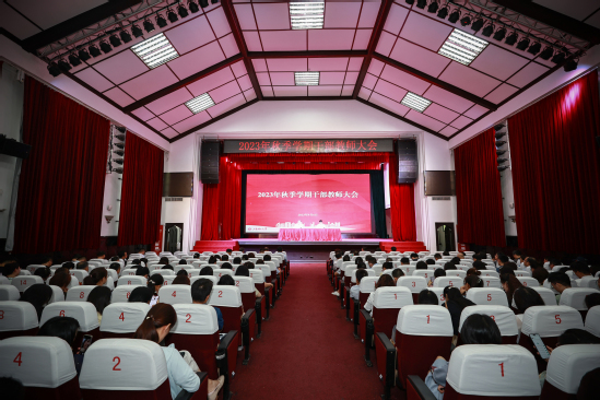 9月6日下午,學(xué)校在大禮堂召開2023年秋季干部教師大會(huì)。黨委書記王凌宇傳達(dá)上海市2023年秋季高校黨政負(fù)責(zé)干部會(huì)議精神并作總結(jié)講話,校長(zhǎng)丁曉東主持會(huì)議并部署新學(xué)期工作。校領(lǐng)導(dǎo)、中層干部、學(xué)科負(fù)責(zé)人、獨(dú)立設(shè)置研究院負(fù)責(zé)人、科級(jí)干部和專技負(fù)責(zé)人、民主黨派負(fù)責(zé)人、無黨派人士代表、輔導(dǎo)員等參加會(huì)議。