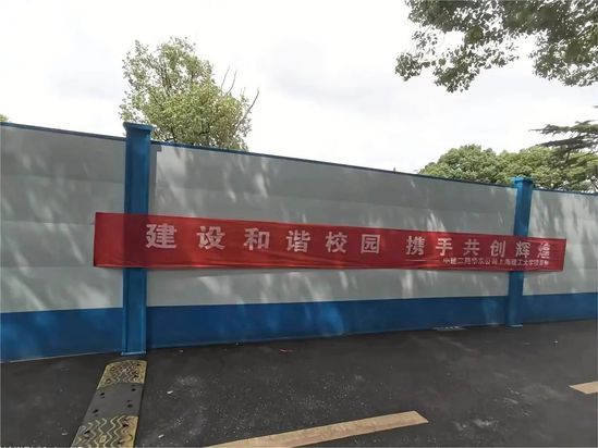 為保障項(xiàng)目施工與學(xué)校教學(xué)工作同步正常開(kāi)展,項(xiàng)目部特別成立青年突擊隊(duì)。項(xiàng)目經(jīng)理、青年突擊隊(duì)隊(duì)長(zhǎng)張雷介紹,項(xiàng)目部劃分施工區(qū)及教學(xué)區(qū),采用裝配式圍擋進(jìn)行隔離,規(guī)劃好施工交通路線(xiàn)及學(xué)校教學(xué)路線(xiàn),在教學(xué)區(qū)隔離圍擋上設(shè)置警示燈、警示標(biāo)語(yǔ),做好安全提示及教育宣傳。同時(shí),項(xiàng)目部在施工現(xiàn)場(chǎng)與教學(xué)區(qū)域交叉口位置設(shè)置交通管理專(zhuān)員,對(duì)施工作業(yè)人員及在校師生的出行進(jìn)行統(tǒng)一協(xié)調(diào)管理。