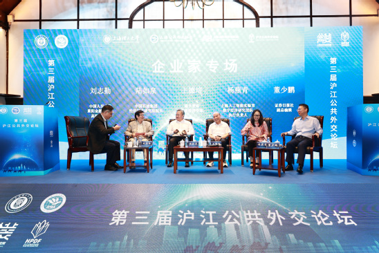 下半場(chǎng)的圓桌論壇環(huán)節(jié)分為學(xué)者專場(chǎng)和企業(yè)家專場(chǎng)。在學(xué)者專場(chǎng),復(fù)旦大學(xué)世界經(jīng)濟(jì)研究所所長(zhǎng)萬(wàn)廣華,浙江大學(xué)區(qū)域協(xié)調(diào)發(fā)展研究中心副主任董雪兵,中國(guó)經(jīng)濟(jì)體制改革研究會(huì)科研部主任南儲(chǔ)鑫,上海理工大學(xué)特聘教授、上海公共外交研究院專家咨詢委員會(huì)副主席黃仁偉等專家就“一帶一路”倡議的理論意涵、十年歷程、未來(lái)展望等問(wèn)題深入探討。在企業(yè)家專場(chǎng),中國(guó)人民大學(xué)重陽(yáng)金融研究院高級(jí)研究員劉志勤、中國(guó)石油集團(tuán)經(jīng)濟(jì)技術(shù)研究院院長(zhǎng)陸如泉、福卡智庫(kù)首席經(jīng)濟(jì)學(xué)家王德培、上海人工智能實(shí)驗(yàn)室數(shù)字經(jīng)濟(jì)研究團(tuán)隊(duì)執(zhí)行負(fù)責(zé)人楊燕青、證券日?qǐng)?bào)社副總編輯董少鵬等專家圍繞“一帶一路”倡議的具體實(shí)踐、科技合作、人才培養(yǎng)等議題進(jìn)行對(duì)話。