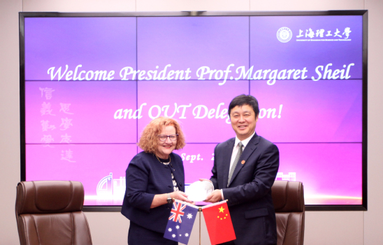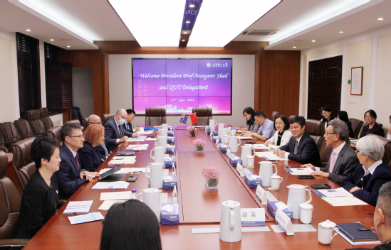 9月27日上午,澳大利亞昆士蘭科技大學(xué)(Queensland University of Technology, QUT)校長謝鎂俐(Margaret Sheil) 教授、副校長Scott Sheppard教授率領(lǐng)代表團(tuán)一行6人訪問上海理工大學(xué)。校長丁曉東在思晏堂201會議室會見了來賓。能源材料科學(xué)研究院院長竇世學(xué)院士、首席科學(xué)家劉化鹍院士,黨校辦、科研院、研究生院、國際交流處、能源材料科學(xué)研究院相關(guān)人員與會。會議由副校長蔡永蓮主持。