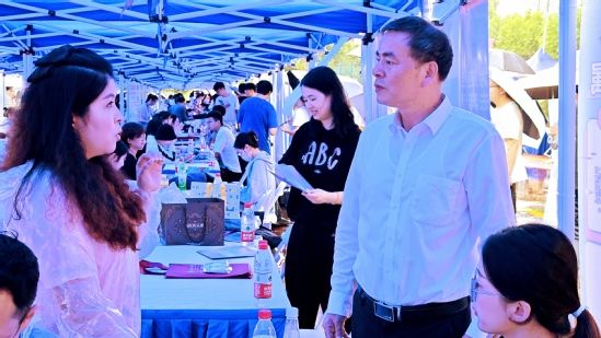盛春與用人單位、應(yīng)聘學(xué)生深入交流