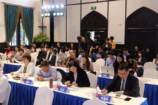 上海市政協(xié)學(xué)習(xí)和文史委員會常務(wù)副主任王小明,上海市文聯(lián)副主席、上海電視藝術(shù)家協(xié)會主席、國家一級導(dǎo)演滕俊杰,復(fù)旦大學(xué)中文系教授、博士生導(dǎo)師、圖書館館長、中華文明國際研究中心主任陳引馳,上海戲劇學(xué)院電影學(xué)院副院長董健,上海市文聯(lián)副主席、上海市公共藝術(shù)協(xié)同創(chuàng)新中心主任、上海大學(xué)上海美術(shù)學(xué)院執(zhí)行院長金江波,我校滬江學(xué)院楊惠玲教授作主旨發(fā)言。