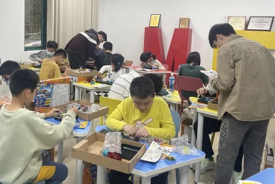 此外,孩子們還走進了“智能工廠”培訓(xùn)室動手體驗起來。在志愿者老師們的指導(dǎo)下,完成了迷宮鈴鐺、飛碟實驗和浮動球?qū)嶒?,并了解實驗背后的原理。而家長們也在一旁的教室觀看機械相關(guān)科普影像,咨詢機械專業(yè)相關(guān)內(nèi)容,在老師的介紹下,了解到如何在現(xiàn)階段掌握機械編程基礎(chǔ)知識、機械專業(yè)的就業(yè)方向和發(fā)展前景等。