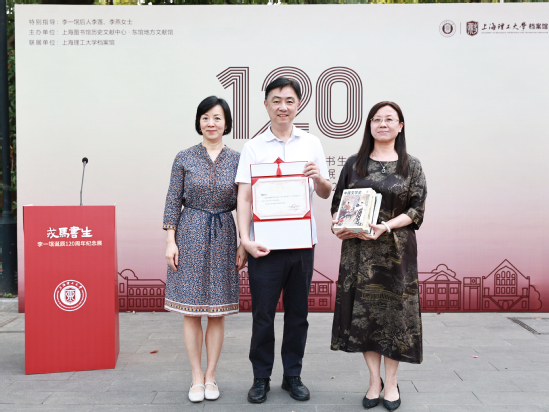 在上海理工大學(xué)迎來117周年校慶之際,10月24日,“戎馬書生——李一氓誕辰120周年紀(jì)念展”上海理工大學(xué)聯(lián)展開幕式在劉湛恩烈士故居紅色文化主題館前舉行。李一氓校友孫女李蓮女士、李燕女士,鄭振鐸校友嫡孫夫婦鄭源先生、王菁女士,學(xué)校黨委書記王凌宇,上海圖書館副館長(zhǎng)林峻,圖文信息黨委書記孫萍,黨委宣傳部副部長(zhǎng)李凡,檔案館館長(zhǎng)孔娜,上圖歷史文獻(xiàn)中心閱覽部主任刁青云、信息處理中心區(qū)域主管祁飛出席開幕式。校檔案館全體人員,校史館志愿講解隊(duì)、劉湛恩烈士故居志愿講解隊(duì)和大學(xué)生校史研究會(huì)成員參加。開幕式由校黨委常委、宣傳部部長(zhǎng)葉磊主持。