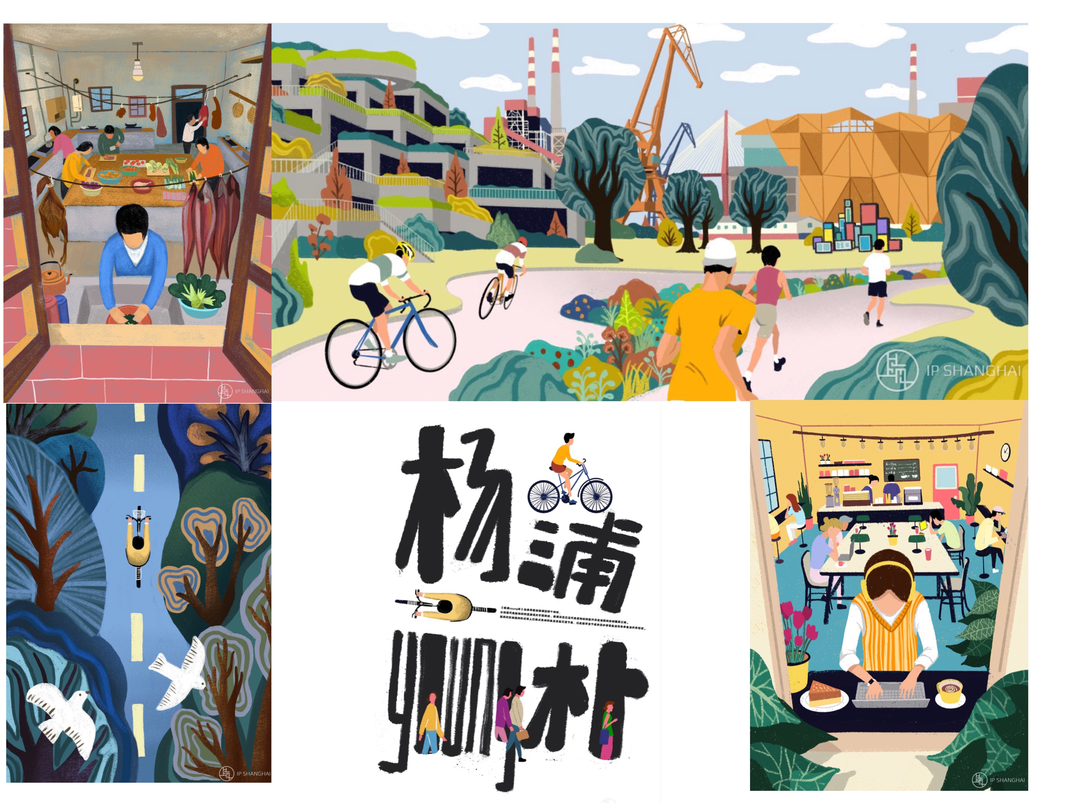 Luca的插畫(huà)色彩明亮,風(fēng)格活潑,手繪感與肌理感很強(qiáng),作品曾收錄于《The Shanghairen》封面集和中國(guó)青年作家報(bào)。而《楊浦young樸》中的部分作品也入選了本次IP SHANGHAI城市主題插畫(huà)展,在第六屆進(jìn)博會(huì)新聞中心進(jìn)行展示。