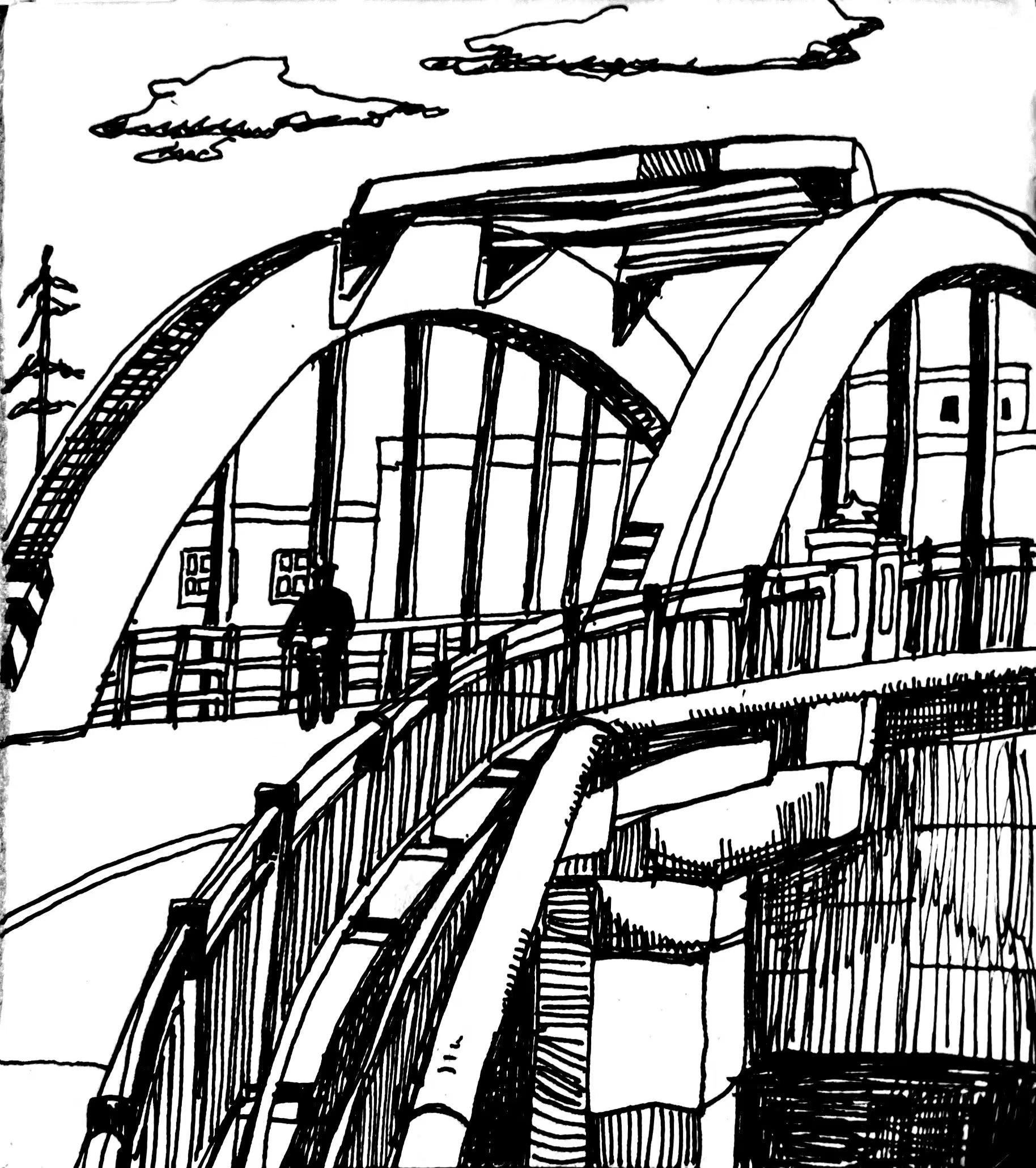 新的變化和可能性就藏在日常生活之中,陸彥好愛(ài)騎著自行車到處走街串巷。帶著畫(huà)具背著小包,從中山西路一路騎到南京路,再?gòu)哪暇┞芬宦夫T回家。中途看到有煙火氣的里弄小巷時(shí)就愛(ài)往里鉆,有時(shí)候靠著墻畫(huà)點(diǎn)速寫(xiě)或是與居民“嘎幾句訕胡”,打聽(tīng)打聽(tīng)附近好吃的小店,最后再坐下來(lái)吃碗餛飩或是本幫面。