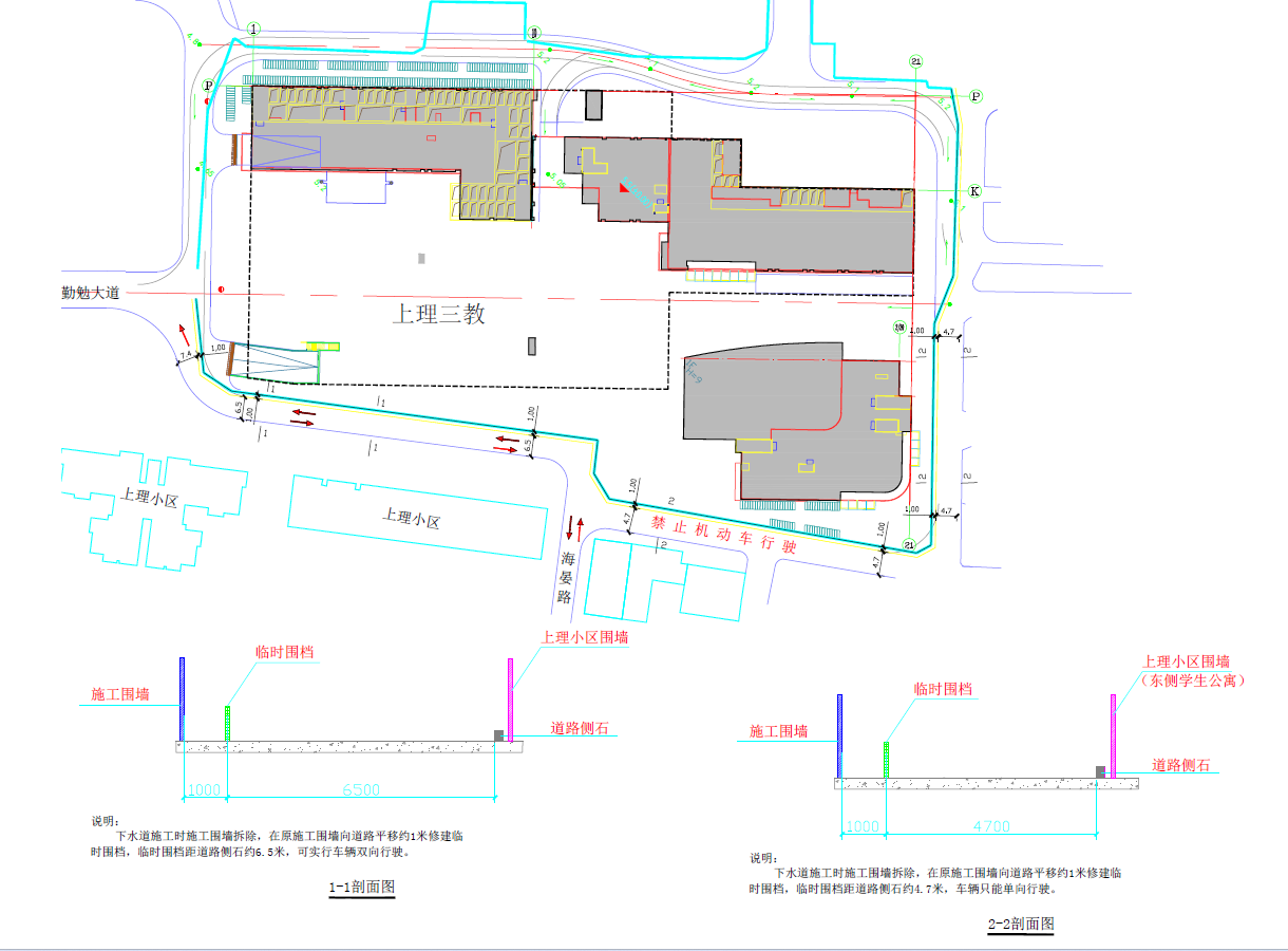 受項(xiàng)目建設(shè)影響,需對(duì)原施工圍墻陸續(xù)進(jìn)行拆除,做臨時(shí)圍擋隔離,對(duì)周邊校園道路將產(chǎn)生一定影響,部分道路變窄,部分道路禁止機(jī)動(dòng)車行駛。預(yù)計(jì)施工時(shí)間為2023年11月21日起至2023年12月30日。詳見(jiàn)附圖: