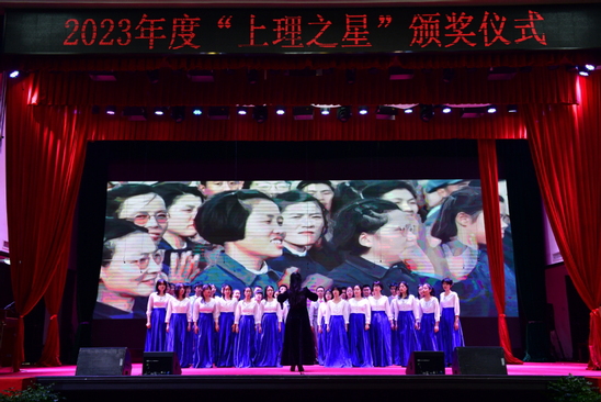 我?;饡貢L司徒唯爾宣讀2023年度“上理之星·優(yōu)秀學(xué)生獎”及“上理之星·羅曼創(chuàng)智教師獎”獲獎名單。我校黨校辦、人事處、工會負(fù)責(zé)人頒發(fā)“上理之星·優(yōu)秀學(xué)生獎”,何勁松、孫凱君共同頒發(fā)“上理之星·羅曼創(chuàng)智教師獎”。