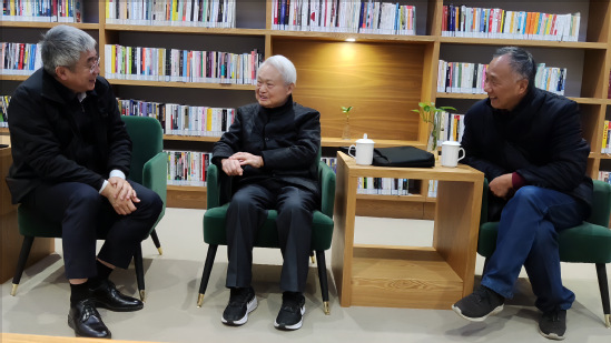 王凌宇詳細(xì)詢問了蘇定強(qiáng)院士的工作生活情況,高度贊揚(yáng)了他在科研領(lǐng)域的卓越貢獻(xiàn),并感謝他對母校和教育事業(yè)的關(guān)心支持。蘇定強(qiáng)院士深情回憶了與母?;雍献鞯狞c(diǎn)點(diǎn)滴滴,為母校的發(fā)展變化由衷感到高興,還介紹了自己最新的科研成果。