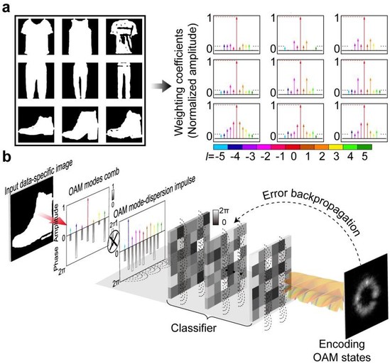 近日,上海理工大學顧敏院士、方心遠研究員課題組在光學領域頂級期刊《光:科學與應用》(Light: Science & Applications)上發(fā)表題為“用于高精度模式特征編碼的軌道角動量介導機器學習”(Orbital angular momentum-mediated machine learning for high-accuracy mode-feature encoding)的研究成果,光子芯片研究院方心遠研究員、博士生胡曉楠、李保莉博士為共同第一作者,顧敏院士和方心遠為通訊作者,上海理工大學為第一單位。