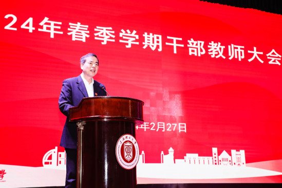 2月27日下午,學(xué)校在大禮堂召開(kāi)春季干部教師大會(huì),傳達(dá)學(xué)習(xí)2024年春季上海高校黨政負(fù)責(zé)干部會(huì)議精神,部署貫徹落實(shí)舉措及2024年學(xué)校黨政重點(diǎn)工作。
