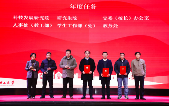 會(huì)議舉行了2023年度年終考核頒獎(jiǎng)儀式,對(duì)光電學(xué)院、管理學(xué)院、健康學(xué)院等6個(gè)獲得年度考核A級(jí)的學(xué)院和黨委(校長(zhǎng))辦公室、研究生院、科技發(fā)展研究院等8個(gè)獲得年度考核A級(jí)的職能部門進(jìn)行表彰,對(duì)“創(chuàng)建全國(guó)文明校園”“社會(huì)聲譽(yù)與管理水平”“國(guó)際交流”“師資隊(duì)伍”“科學(xué)研究”“研究生培養(yǎng)質(zhì)量與學(xué)科學(xué)位點(diǎn)建設(shè)”“學(xué)生工作”“本科生培養(yǎng)質(zhì)量”“黨建引領(lǐng)和立德樹(shù)人”等9個(gè)學(xué)院專項(xiàng)考核獎(jiǎng)和“文明創(chuàng)建”“協(xié)同合作”“年度任務(wù)”“部門建設(shè)”“基層黨建”等5個(gè)職能部門專項(xiàng)考核獎(jiǎng)進(jìn)行頒獎(jiǎng)。隨后,校長(zhǎng)丁曉東與各二級(jí)管理部門負(fù)責(zé)人及其聯(lián)系工作校領(lǐng)導(dǎo)逐一簽訂了2024年度績(jī)效目標(biāo)任務(wù)書(shū)和安全穩(wěn)定責(zé)任書(shū)。