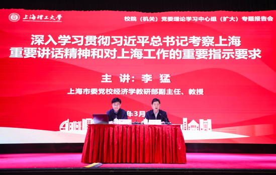 3月28日下午,校院(機關(guān))黨委理論學(xué)習(xí)中心組舉行新學(xué)期首場(擴大)專題報告會,深入學(xué)習(xí)貫徹習(xí)近平總書記考察上海重要講話精神。市委黨校經(jīng)濟學(xué)教研部副主任、教授李猛做專題輔導(dǎo)報告。此次學(xué)習(xí)會也是學(xué)校處級干部學(xué)習(xí)貫徹習(xí)近平總書記考察上海重要講話精神專題研討班報告會。報告會由黨委副書記孫躍東主持。