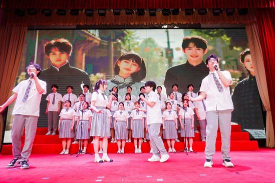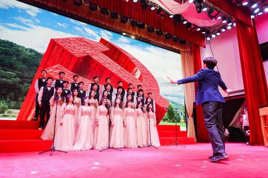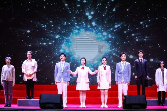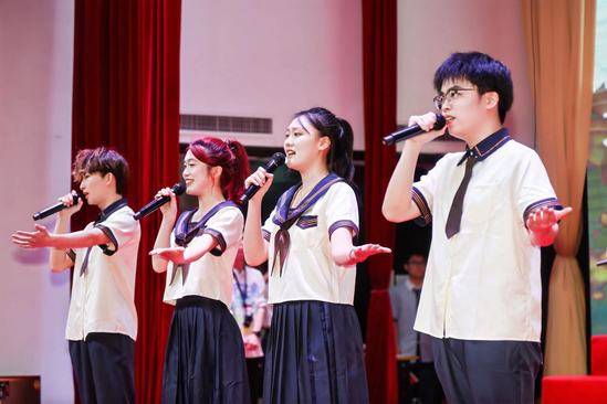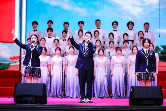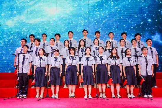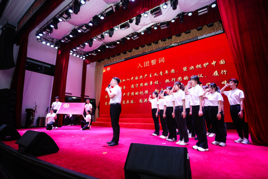 青春接力前行,79名新團員在團旗下宣誓加入中國共產(chǎn)主義青年團。大學生藝術團帶來情景朗誦《追·星》,紀念為新中國建設和發(fā)展作出巨大貢獻的科學家和國之棟梁。附屬高中和中英學院學生合唱團帶來了青少年合唱《燈火里的中國》和《有我》,用飛揚的歌聲和著時代的節(jié)拍,致敬奮斗的青春。