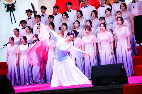 主題活動第一部分在集體奏唱中國共青團團歌中落下帷幕,主題歌會正式開始。歌會圍繞“同心·共融”“同向·共創(chuàng)”“同行·共進”三個篇章精彩呈現(xiàn),我校青年學子通過豐富多樣的演唱形式,回望崢嶸歲月,唱響美好未來;用音符譜寫初心,以歌聲唱響使命,展現(xiàn)了新時代青年的青春活力和自信擔當。