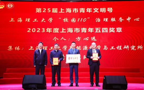 校團委書記劉威宣讀了市級、校級表彰名單,孫躍東、孫紅、葉磊、黨校辦主任李川、紀委副書記魏東、保衛(wèi)部部長謝錫浩分別為獲獎的集體和個人頒獎。能動學院李子洋同學、健康學院龔瑾同學、光電學院團委書記關滑琦、“上海市青年文明號”集體——?!靶@110”治理服務中心蘇海華分別代表優(yōu)秀個人和集體作發(fā)言交流。