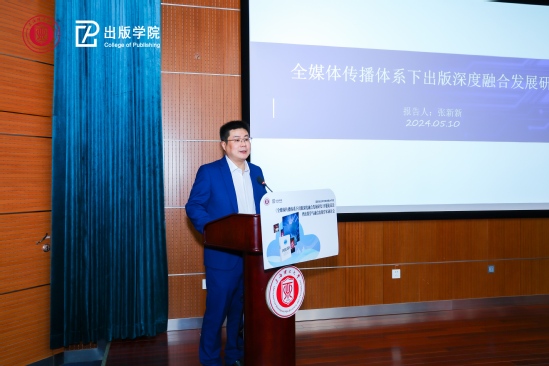 該項(xiàng)目首席專(zhuān)家、上海理工大學(xué)出版學(xué)院張新新教授作項(xiàng)目整體報(bào)告,從研究現(xiàn)狀、選題價(jià)值、總體框架和預(yù)期目標(biāo)、研究思路和研究方法、重點(diǎn)難點(diǎn)和創(chuàng)新之處五個(gè)方面介紹了課題的研究構(gòu)想。他指出,全媒體傳播體系是推進(jìn)出版深度融合發(fā)展的契合處、聯(lián)結(jié)點(diǎn)和內(nèi)在邏輯,是出版深度融合發(fā)展的重要目標(biāo)與依托。該項(xiàng)目致力于構(gòu)建全媒體傳播體系下出版深度融合發(fā)展科學(xué)內(nèi)涵與協(xié)同機(jī)理的基礎(chǔ)理論,攻克出版深度融合發(fā)展指標(biāo)、指數(shù)體系這一關(guān)鍵理論,形成數(shù)智驅(qū)動(dòng)的出版深度融合發(fā)展調(diào)節(jié)路徑以及敏捷治理賦能的出版深度融合發(fā)展治理路徑,最終提出出版深度融合發(fā)展調(diào)治論,構(gòu)建出版深度融合發(fā)展自主知識(shí)體系,完成推進(jìn)出版深度融合發(fā)展研究的學(xué)理支撐。