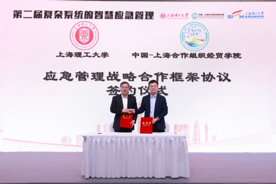 活動現(xiàn)場,上海理工大學(xué)和中國-上海合作組織經(jīng)貿(mào)學(xué)院簽署合作協(xié)議,兩校將在共建中國—上海合作組織經(jīng)貿(mào)學(xué)院管理學(xué)院、智慧應(yīng)急研究院和高水平智庫等方面開展全方位合作。簽約儀式后,我校黨委副書記、副校長盛春和中國-上海合作組織經(jīng)貿(mào)學(xué)院院長鄭師為智慧應(yīng)急研究院揭牌。兩校將依托該研究院,面向上海合作組織及“一帶一路”共建國家,合力開展智慧應(yīng)急科技攻關(guān)、深化智慧應(yīng)急產(chǎn)教融合改革、建設(shè)國際化的智慧應(yīng)急實(shí)驗(yàn)與產(chǎn)業(yè)基地。