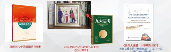 德語系黨員教師王婀娜教授參與2021年度國家社科基金重大項(xiàng)目子項(xiàng)目“高等學(xué)校外語類‘理解當(dāng)代中國’德語系列教材編寫與研究”。該課題的主要任務(wù)是以《習(xí)近平談治國理政》第二卷的重大主題為綱要,將習(xí)近平新時(shí)代中國特色社會(huì)主義思想系統(tǒng)融入外語類專業(yè)核心課程教材。同年,她受國家外文局委托翻譯出版“讀懂中國共產(chǎn)黨”系列叢書《中國共產(chǎn)黨這樣走來——從中共一大到中共十九大》(德文版)。在建黨100周年之際,該書銷量異?;鸨?,目前第二版已經(jīng)出版發(fā)行。同時(shí),王婀娜教授團(tuán)隊(duì)翻譯的《九大思考:重新審視我們的世界》為習(xí)近平總書記辦公室書架上的書籍之一。