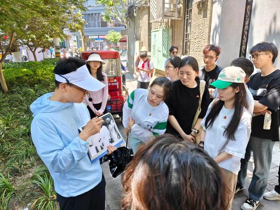 隨后,為將黨史黨紀(jì)教育與深入了解上海城市文化有機融合,馬克思主義學(xué)院研究生第二黨支部與上海美凰國際物流有限公司黨支部聯(lián)合開展以“多倫路街區(qū)的紅色記憶”為主題的行走黨課。本次活動邀請了虹口區(qū)區(qū)委黨校潘秦保老師,帶領(lǐng)各位黨員同志在“邊行走、邊打卡、邊學(xué)習(xí)”的體驗中深挖上海紅色史跡,追尋紅色革命印記,從行走中知黨史、感黨恩。兩個支部黨員代表共計20余人參加活動。