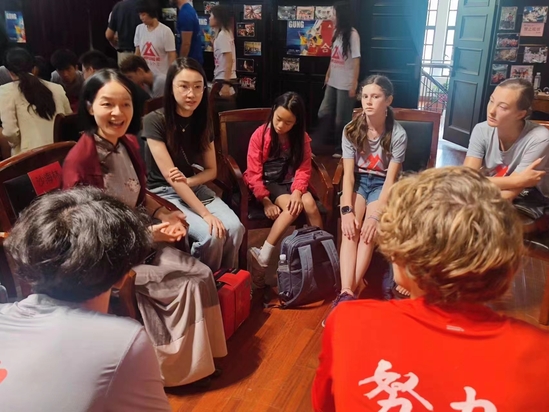 8月3日,上海市公共關(guān)系協(xié)會(huì)會(huì)長(zhǎng)沙海林、上理工副校長(zhǎng)蔡永蓮也特地前往設(shè)于音樂(lè)堂的營(yíng)員交流工作坊,參加了主題為“我可以為中美關(guān)系做哪些貢獻(xiàn)”的交流活動(dòng)。沙海林表示,工合夏令營(yíng)作為一種跨文化交流平臺(tái),對(duì)于中美青少年而言意義非凡,中美青少年在夏令營(yíng)中培養(yǎng)的國(guó)際視野和跨文化交流能力將對(duì)他們的成長(zhǎng)產(chǎn)生深遠(yuǎn)影響,將幫助他們成為推動(dòng)兩國(guó)乃至世界和平發(fā)展與合作共贏的重要力量。在工作坊里,蔡永蓮積極關(guān)心關(guān)注美國(guó)青少年?duì)I員在中國(guó)的生活情況,與他們親切圍坐在一起,營(yíng)員們熱情大方地暢談交流在中國(guó)的所見(jiàn)所聞所感,現(xiàn)場(chǎng)氣氛十分融洽。滬江學(xué)院對(duì)外漢語(yǔ)教研部主任計(jì)冬楨為營(yíng)員們講述了我校的百年歷史脈絡(luò),尤其是學(xué)校在建立過(guò)程中與美國(guó)的教育交流以及第一任華人校長(zhǎng)劉湛恩先生對(duì)學(xué)校發(fā)展的突出貢獻(xiàn)。