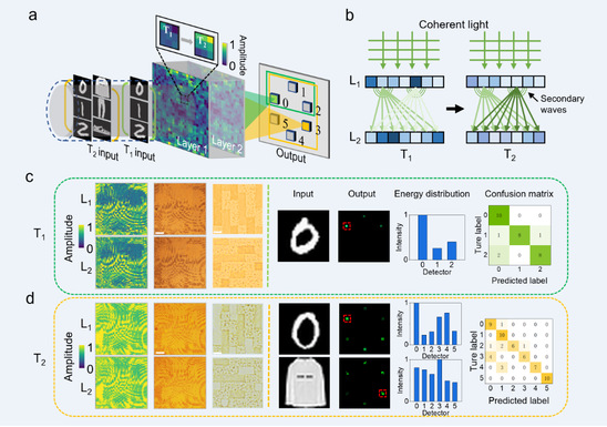 以ChatGPT為代表的人工智能浪潮正在席卷全球,對(duì)基于馮·諾依曼架構(gòu)的電子計(jì)算機(jī)芯片算力和能耗提出了嚴(yán)峻的挑戰(zhàn)。光子芯片利用光子代替電子進(jìn)行光計(jì)算,具有速度快、能耗低、帶寬高等優(yōu)勢(shì),是人工智能技術(shù)可持續(xù)發(fā)展的重要驅(qū)動(dòng)力。近年來(lái),基于光學(xué)數(shù)字化全息技術(shù)的衍射神經(jīng)網(wǎng)絡(luò)由于具有高并行性、高集成度和高算力的優(yōu)勢(shì),成為光計(jì)算的一個(gè)重要平臺(tái),是實(shí)現(xiàn)類腦存算一體化芯片的重要技術(shù)路徑。然而當(dāng)前的光學(xué)衍射神經(jīng)網(wǎng)絡(luò)硬件難以調(diào)諧,尤其不具備時(shí)域可調(diào)諧特性,無(wú)法直接實(shí)現(xiàn)存算一體化。