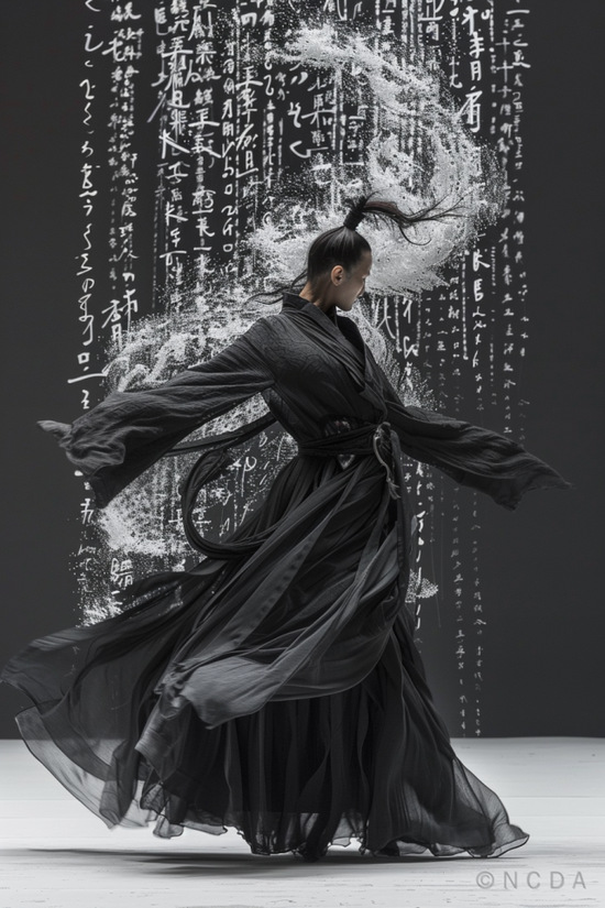 作品說明:筆墨濃淡,山水盡出。墨是千年文化之書寫載體,亦是華夏文明之魂魄。讓我們一起感受“墨”獨(dú)有的意境。言本系列作品以AIGC技術(shù)為基礎(chǔ),結(jié)合時尚攝影與中國文化元素, 展現(xiàn)新國潮理念。意通過視覺藝術(shù),傳達(dá)中華文化獨(dú)有的意境美。作品中包含傳統(tǒng)水墨書法、舞蹈、功夫等元素,在現(xiàn)代技術(shù)下加持下它們重新綻放出獨(dú)有的魅力。