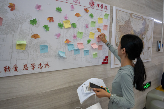 “開學(xué)心愿墻”,健康科學(xué)與工程學(xué)院、理學(xué)院的學(xué)子們紛紛寄語未來,無論是職業(yè)藍圖、科研夢想還是成長規(guī)劃,每位同學(xué)都在這里寫下對自己研究生三年的期許和祝福;“家鄉(xiāng)位置標記”,理學(xué)院新生們在中國地圖KT板上標記家鄉(xiāng),增進彼此了解,讓學(xué)子們感受到“身在異鄉(xiāng)不為客”的溫馨。