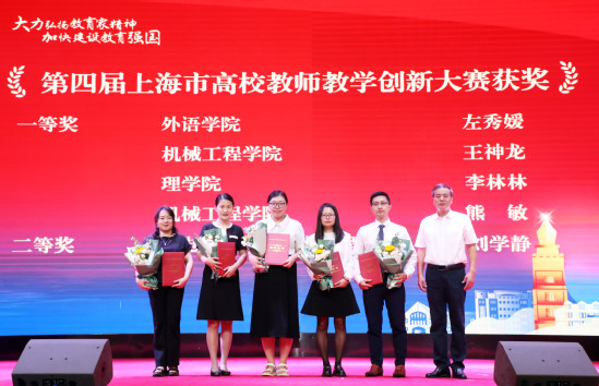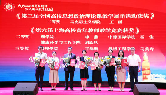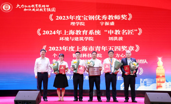 孫躍東為獲“寶鋼優(yōu)秀教師”、上海教育系統(tǒng)“申教名匠”、“上海市青年五四獎(jiǎng)?wù)隆?、“上海市輔導(dǎo)員年度人物”等榮譽(yù)的教師頒獎(jiǎng)