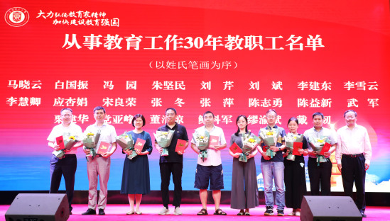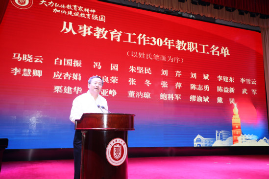 朱新遠(yuǎn)宣讀從事教育工作30年教師名單并頒發(fā)榮譽(yù)證書(shū)