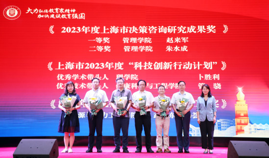 校黨委常委、宣傳部部長(zhǎng)葉磊為2023年度上海市決策咨詢研究成果獎(jiǎng)、上海市2023年度“科技創(chuàng)新行動(dòng)計(jì)劃”、2023年度機(jī)械工業(yè)科學(xué)技術(shù)獎(jiǎng)的獲得者頒獎(jiǎng)