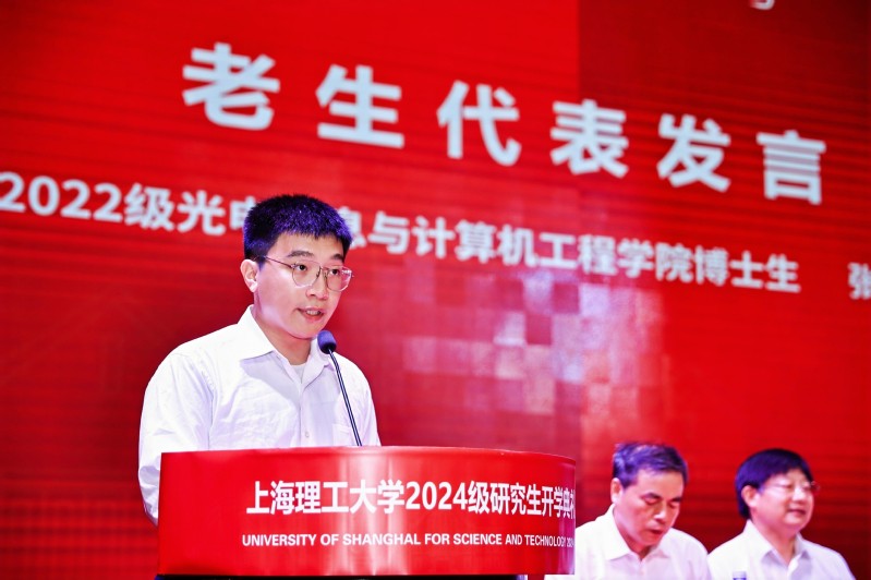 作為2024級(jí)研究生新生代表,來自能源與動(dòng)力工程學(xué)院的碩士研究生張博涵在發(fā)言中用自己的真實(shí)經(jīng)歷鼓勵(lì)新生志存高遠(yuǎn),堅(jiān)定理想信念,將自身發(fā)展與國家前途和民族命運(yùn)緊密聯(lián)系。光電信息與計(jì)算機(jī)工程學(xué)院2022級(jí)博士研究生張世杰作為老生代表發(fā)言,他用自身的科研經(jīng)歷告誡新生們做科研工作要禁得住磨練,要相信柳暗終會(huì)花明,同時(shí)更要兼顧全面發(fā)展,踐行初心,肩負(fù)起強(qiáng)國有我的使命,讓科研成果助力各行各業(yè)發(fā)展。機(jī)械工程學(xué)院教授、博士生導(dǎo)師沈偉作為導(dǎo)師代表發(fā)言,他勉勵(lì)新生首先是要有系統(tǒng)思維,進(jìn)行深度思考,在科研中放眼全局,以結(jié)果為導(dǎo)向制定出清晰的研究思路;其次是要勇敢行動(dòng),拒絕精神內(nèi)耗,相信每一次努力都不會(huì)白費(fèi),每一次拼搏都是向未來目標(biāo)邁進(jìn)的一步,涓涓細(xì)流終將匯成江海。