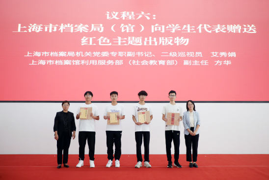 上海市檔案局(館)向?qū)W生代表贈(zèng)送紅色主題出版物