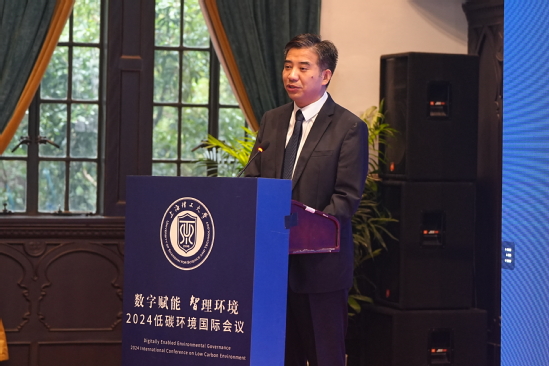 岳海洋副校長代表主辦方向海內外專家學者致以熱烈歡迎和衷心感謝。他在致辭中指出,全球環(huán)境問題日益嚴峻,低碳發(fā)展已是國際共識??萍歼M步推動人工智能逐漸融入生活,為環(huán)境治理帶來新的機遇和挑戰(zhàn)。本次會議緊扣當前環(huán)境領域的熱點和前沿問題,期待與會專家深入探討數(shù)字化、智能化與綠色化的融合,為全球低碳治理貢獻智慧與力量。