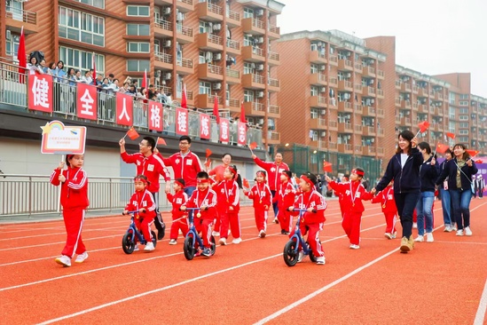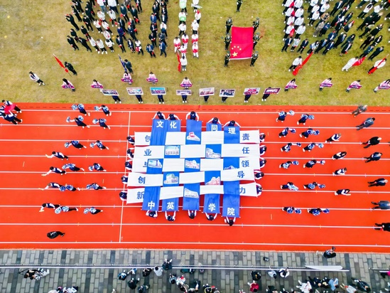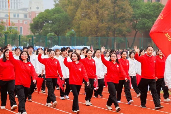 秋風(fēng)送芬芳,碩果兆輝煌。學(xué)校國(guó)旗儀仗隊(duì)高擎鮮艷的五星紅旗,邁著鏗鏘有力的步伐率先入場(chǎng),伴隨著激昂的運(yùn)動(dòng)員進(jìn)行曲,各代表隊(duì)方陣緊隨其后。來(lái)自附屬幼兒園的小朋友們率先亮相,活潑可愛(ài)是他們的代名詞;滬江學(xué)院的國(guó)際方陣用舞蹈串起了世界的橋梁;管院學(xué)子以自信作盛裝,共慶祖國(guó)75周年華誕;中英學(xué)子用中國(guó)結(jié)的創(chuàng)意編織出藍(lán)白相間的精美圖騰,托舉夢(mèng)想走向遠(yuǎn)方……在學(xué)校516號(hào)校區(qū)嶄新的跑道上,在即將投入使用的健身中心映襯下,全校師生歡聚一堂,共享學(xué)校發(fā)展成果,唱響上理發(fā)展的樂(lè)章。