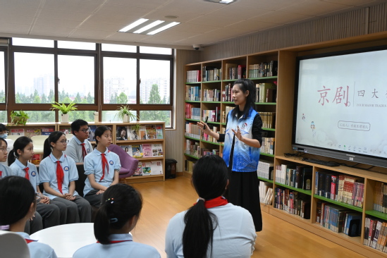 楊晟瀟給上理附中的同學(xué)們講授京劇知識
