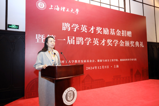 奮進滬江園,薪火鑄輝煌。12月5日上午,能動學院在學校大禮堂貴賓廳隆重舉行鹍學英才獎勵基金捐贈暨第一屆鹍學英才獎學金頒獎典禮。上海理工大學校長朱新遠,能源材料科學研究院院長竇世學院士,能源材料科學研究院首席科學家劉化鹍院士,研究生院院長崔國民,黨委(行政)辦公室副主任何建佳,校友工作聯(lián)絡處副處長司徒唯爾,能源與動力工程學院、能源材料科學研究院主要負責同志,獲獎學生及師生代表出席頒獎典禮。頒獎典禮由能源與動力工程學院黨委書記謝金平主持。