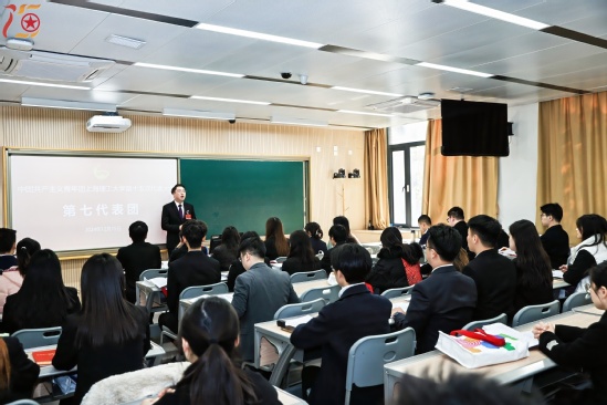 唐志宇代表團市委向大會的召開表示熱烈祝賀,他在講話中充分肯定了學校各級團組織在學校黨委的堅強領導下,在強化思想引領、服務青年成長、豐富校園文化、投身志愿服務等方面,做了大量的工作,取得了顯著成效,并代表團市委向學校各級團組織提出四點希望:一是牢牢把握“政治學?!钡墓δ芏ㄎ唬鋵崬辄h育人的政治責任;二是牢牢把握先鋒力量的重要職責,凝聚擔當盡責的奮進合力;三是牢牢把握橋梁紐帶的關鍵作用,塑造扎根青年的活力之源;四是牢牢把握先進組織的建設目標,彰顯自我革命的鮮明品格,他號召廣大團員青年在習近平新時代中國特色社會主義思想指引下,追隨信仰之光、扛起歷史之責、不負時代之望,讓青春在為中國式現代化挺膺擔當中煥發(fā)絢麗光彩!