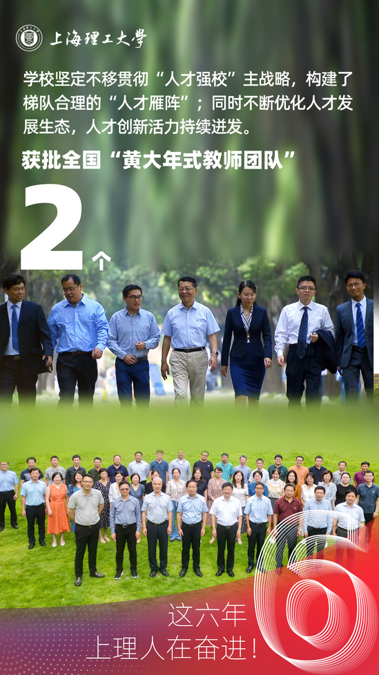 這六年,上海理工大學(xué)堅(jiān)定不移貫徹“人才強(qiáng)?!敝鲬?zhàn)略,構(gòu)建了梯隊(duì)合理的“人才雁陣”;同時(shí)不斷優(yōu)化人才發(fā)展生態(tài),人才創(chuàng)新活力持續(xù)迸發(fā)。獲批全國“黃大年式教師團(tuán)隊(duì)”2個(gè)。