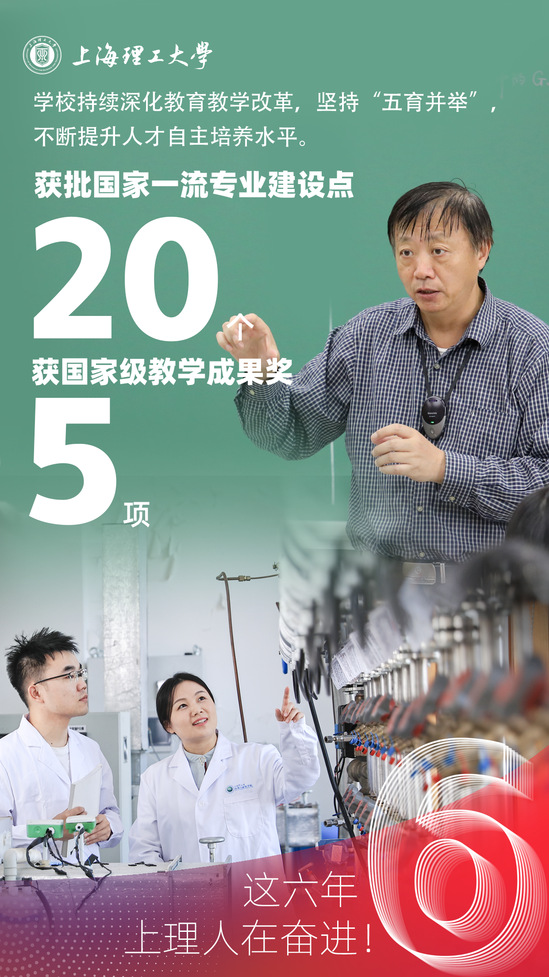 這六年,上海理工大學(xué)持續(xù)深化教育教學(xué)改革,堅持“五育并舉”,不斷提升人才自主培養(yǎng)水平。獲批國家一流專業(yè)建設(shè)點20個,獲國家級教學(xué)成果獎5項。