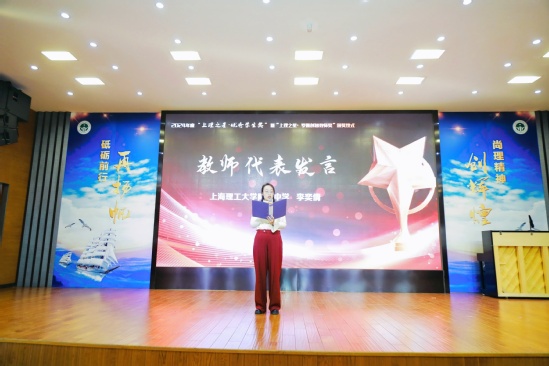 上理工附中獲獎學(xué)生代表丁子揚(yáng)對一直以來關(guān)懷、幫助自己成長的老師們表達(dá)了感激之情,許下了不辜負(fù)師長們的期望、再創(chuàng)佳績的約定。上理工附中李奕倩在獲獎感言中說到,她堅(jiān)信尊重每一個(gè)學(xué)生的獨(dú)特性,用欣賞的眼光去聆聽和關(guān)注他們的成長,以愛換愛,用愛心澆灌,祖國的花朵們一定能茁壯成長,擔(dān)起新時(shí)代使命。