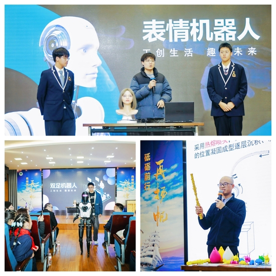 儀式上,上海理工大學(xué)附屬中學(xué)的中西合璧的器樂表演《流金歲月》,讓現(xiàn)場觀眾沉浸式體驗(yàn)傳統(tǒng)與現(xiàn)代的藝術(shù)交融。學(xué)校展示的雙足機(jī)器人、表情機(jī)器人以及3D打印,讓現(xiàn)場師生近距離感受到了科創(chuàng)的魅力。今年首次在活動中穿插的抽獎環(huán)節(jié),也在現(xiàn)場掀起了一波小高潮。