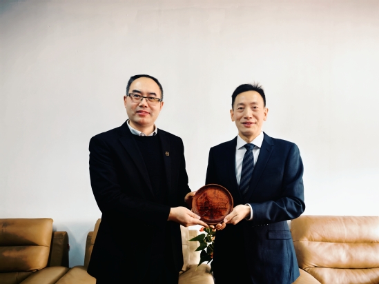 儀式前,劉德強(qiáng)代表學(xué)校向王聚校友贈送了以學(xué)校大禮堂為原型設(shè)計(jì)的木雕紀(jì)念品。