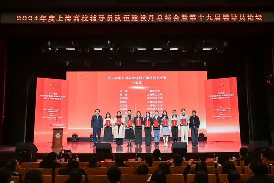 1月7日,“凝聚思政引領(lǐng)力 固本鑄魂育新人”2024年度上海高校輔導(dǎo)員隊(duì)伍建設(shè)月總結(jié)會(huì)暨第十九屆輔導(dǎo)員論壇在上海師范大學(xué)舉行。上海各高校學(xué)(研)工部部長(zhǎng)、輔導(dǎo)員代表等近200人參加會(huì)議。會(huì)議總結(jié)展示了2024年度上海高校輔導(dǎo)員隊(duì)伍建設(shè)月的工作成果,現(xiàn)場(chǎng)為2024上海高校輔導(dǎo)員年度人物及提名、2024年上海高校輔導(dǎo)員素質(zhì)能力大賽獲獎(jiǎng)?wù)?、第二十一屆上海高校輔導(dǎo)員征文活動(dòng)獲獎(jiǎng)?wù)哳C發(fā)證書。我校學(xué)生處處長(zhǎng)何爐進(jìn)帶隊(duì),6名專職輔導(dǎo)員參加會(huì)議及論壇。
