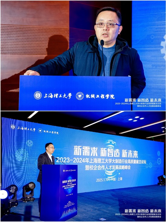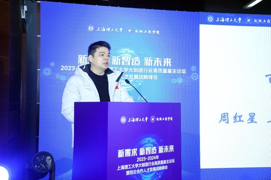 1月10日,上海理工大學(xué)第二屆大制造行業(yè)高質(zhì)量雇主論壇暨校企合作人才發(fā)展戰(zhàn)略峰會(huì)在圖文信息中心舉行。60余家智能制造企業(yè)、110位企業(yè)技術(shù)專家和人力資源專家走進(jìn)上理工,進(jìn)一步深化產(chǎn)教融合、科教融匯,推進(jìn)制造業(yè)高質(zhì)量發(fā)展,深入探索高層次卓越工程人才培養(yǎng)新路徑。上海市教育委員會(huì)學(xué)生處副處長周紅星、上海理工大學(xué)黨委副書記、副校長劉德強(qiáng)以及上海交通大學(xué)、同濟(jì)大學(xué)、華東理工大學(xué)、東華大學(xué)、上海大學(xué)、上海第二工業(yè)大學(xué)、上海工程技術(shù)大學(xué)、上海應(yīng)用技術(shù)大學(xué)和我校學(xué)生工作部(處)、研究生工作部、校團(tuán)委、機(jī)械工程學(xué)院相關(guān)領(lǐng)導(dǎo)嘉賓出席。開幕式由機(jī)械學(xué)院黨委副書記韋彪主持,峰會(huì)主論壇報(bào)告由機(jī)械工程學(xué)院副院長姜晨主持。