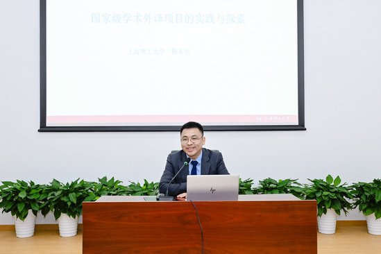 外語學(xué)院日語系主任楊本明以《國家級(jí)學(xué)術(shù)外譯項(xiàng)目的實(shí)踐與探索》為題,從宏觀角度對(duì)國家外譯項(xiàng)目進(jìn)行了深入細(xì)致的介紹,建議外語人才積極響應(yīng)國家號(hào)召,傳播中國聲音,闡釋中國特色,精準(zhǔn)傳達(dá)中華文化精華,譯好不斷行進(jìn)變化的中國,促進(jìn)中外文明交流互鑒。