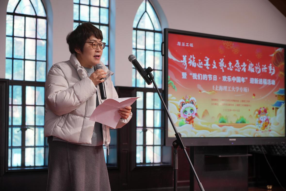 陳紅在致辭中代表上海理工大學(xué)美育戰(zhàn)線全體同仁和全校學(xué)生,向上海市書法家協(xié)會(huì)代表團(tuán)為我校留滬中外學(xué)生送春聯(lián)、送福字致以最誠摯的謝意。希望今后能與上海市書法家協(xié)會(huì)密切合作,在人才共育、展賽共襄、資源共享、文化共建等方面,合力譜寫美美與共、互益多贏的書法美育大篇章。