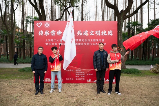 3月5日中午,軍工路校區(qū)國(guó)旗廣場(chǎng)上青春洋溢、熱情涌動(dòng)。 為深入貫徹落實(shí)習(xí)近平總書(shū)記關(guān)于弘揚(yáng)雷鋒精神的系列重要指示精神,在第62個(gè)“學(xué)雷鋒紀(jì)念日”和第26個(gè)“中國(guó)青年志愿者服務(wù)日”到來(lái)之際,學(xué)校舉行“3·5學(xué)雷鋒紀(jì)念日主題活動(dòng)暨‘隨手公益 文明校園’志愿服務(wù)專(zhuān)項(xiàng)行動(dòng)啟動(dòng)儀式”。黨委副書(shū)記、副校長(zhǎng)劉德強(qiáng),黨委常委、宣傳部部長(zhǎng)李志清出席活動(dòng),后勤管理處處長(zhǎng)劉威、教師工作部副部長(zhǎng)蒲瑩瑩,校團(tuán)委全體人員、各二級(jí)學(xué)院團(tuán)委書(shū)記、師生代表參加活動(dòng)。儀式由校團(tuán)委副書(shū)記高涵主持。
